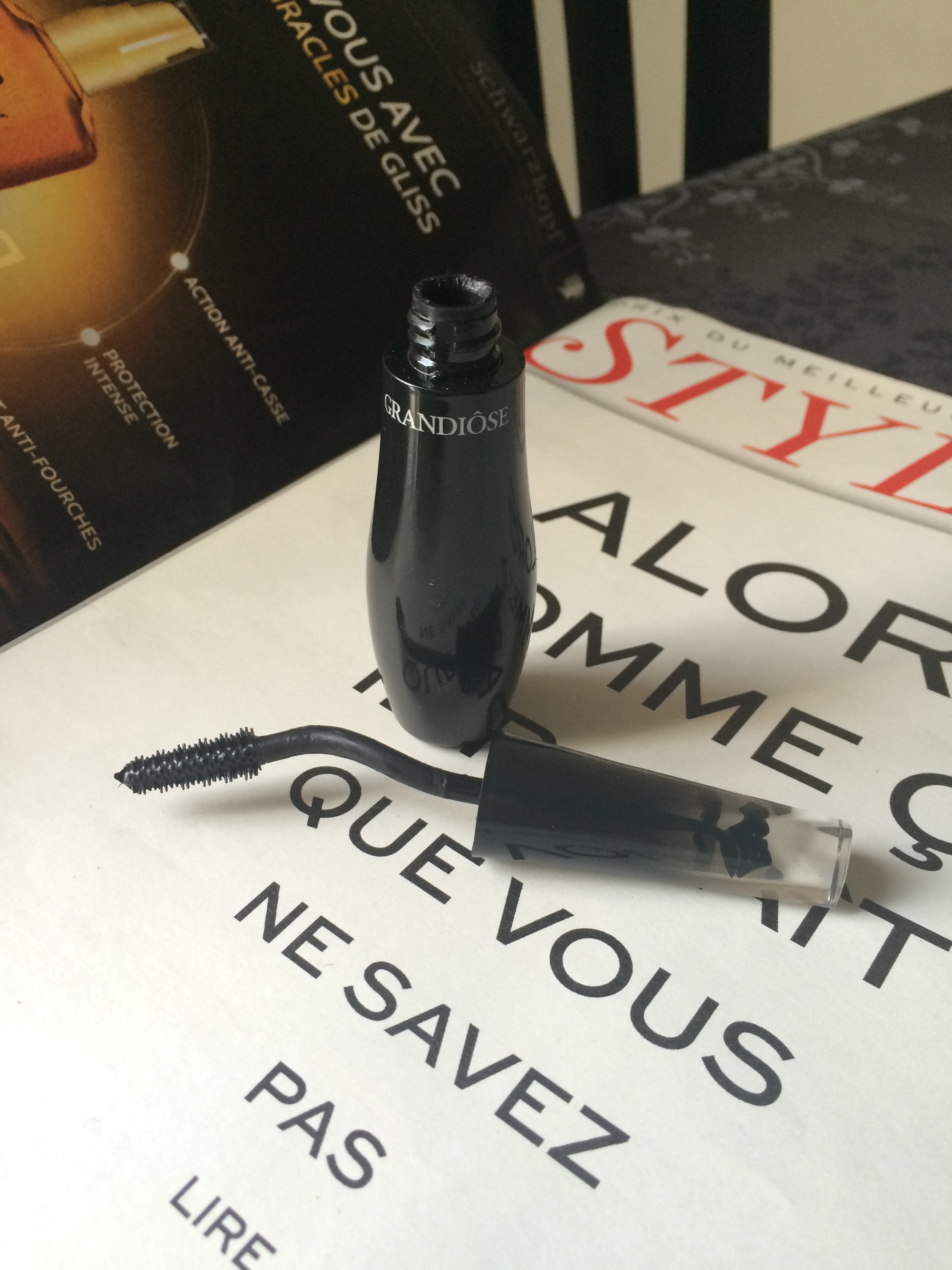 Ma belle-soeur était chez moi il y a trois semaines et elle m’a permis d’essayer le dernier mascara de Lancôme: Grandiôse.